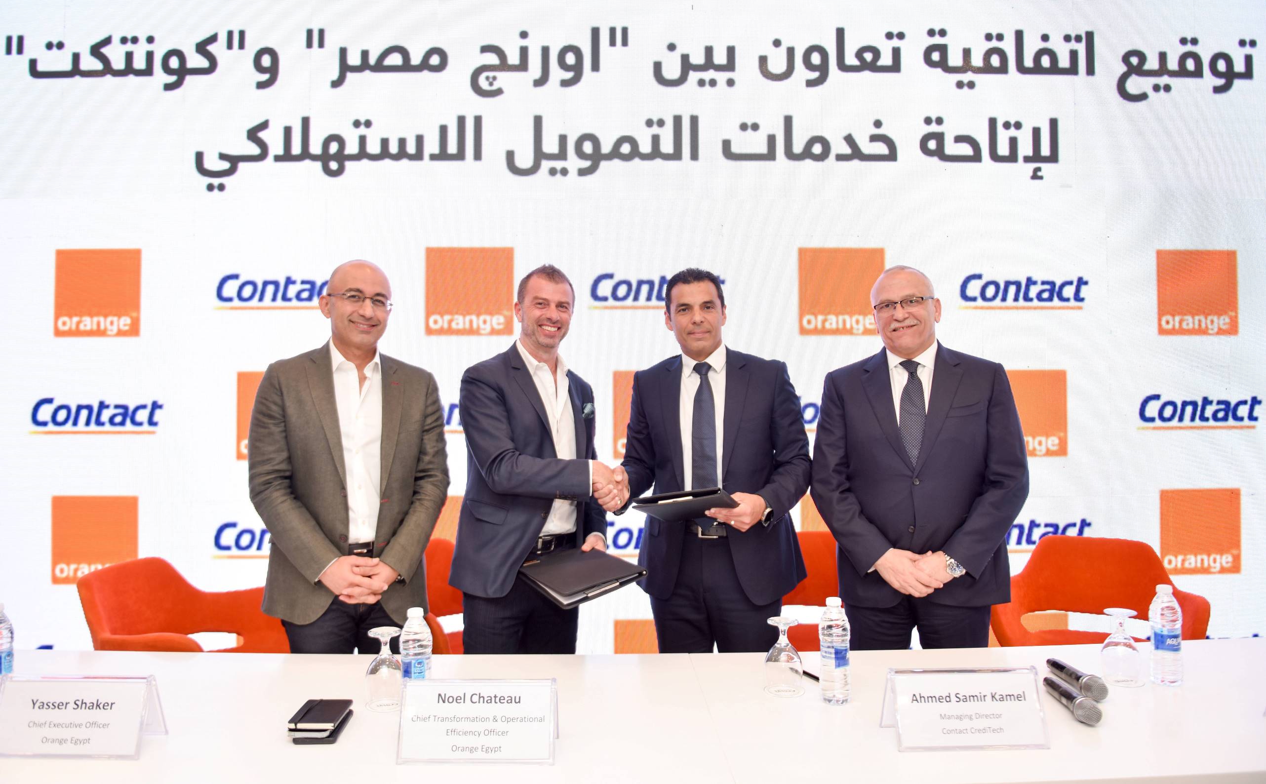 The signing of the partnership agreement was witnessed by Eng. Yasser Shaker, CEO of Orange Egypt, Mr. Said Zater, CEO and MD of Contact Financial Group, and several leaders of the two companies.